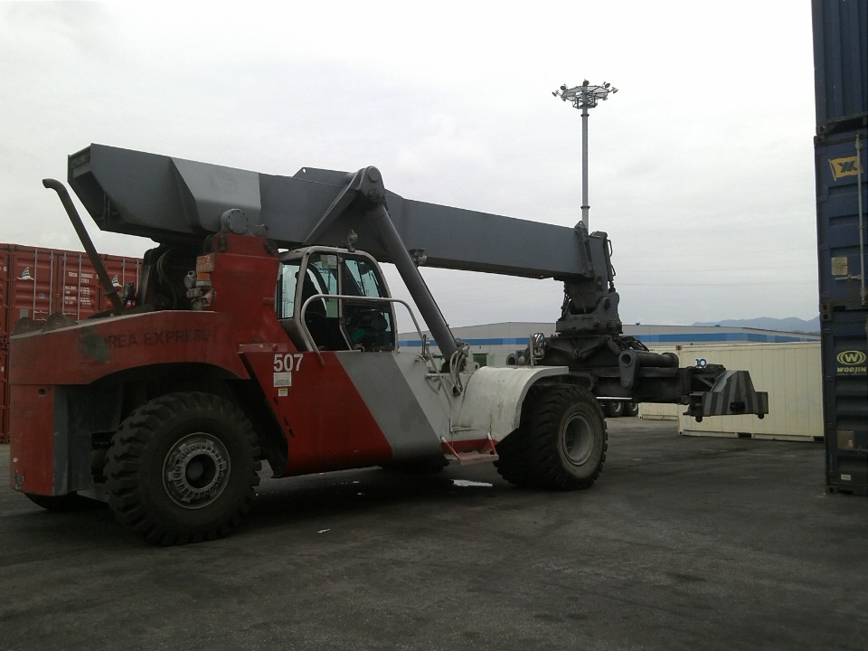 for sale used Folk Lift, for sale used Reach Stacker, for sale used Container handler, 45ton, TEREX, PPM, TFC45R, 1999year, good, smgyo@naver.com, maker- TEREX, PPM, model- TFC45R, loading- 45ton, weight- 68ton, engine- M11-C290 (283 PS/ 2100 RPM) V6 CYL, spection- L11785 x W6050 x H4660, made by 1999 year, start work 2000year05, SN- VHXTFC45R-17070*, GOOD WORK CONDITION, smgyo@naver.com, 중고 대형 지게차 매매문의 수출문의, 중고 컨테이너 핸들러 매매문의 수출문의, 중고 리치스테커 매매문의 수출문의, 테렉스, PPM, 상차작업중량 45톤, 장비 자중68톤, 제작1999년, 수입등록2000년, 상태양호, 문의 02-2677-5544, 대가중장비플랜트,