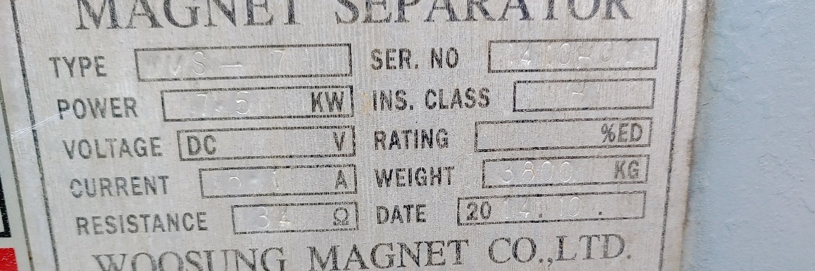 Magnet, Electroic Magnet, 7.5Kw, Electro magnet with conveyor and control panel, smgyo@naver.com, 중고 전자석 매매문의, 전기자석매매문의, 7.5Kw, 컨베어벨트 폭1300 x 길이5100mm, 제작우성, 2014년, 배전반 컨트롤판넬 포함, 총1대분, 상태양호, 문의 02-2677-5544, 대가중장비플랜트,
