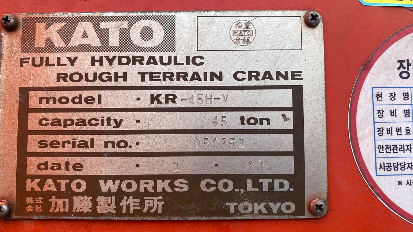 for sale used Crane Rough Terrain, RT crane, KATO, KR45HV, 1990year, EMAIL--smgyo@naver.com, 중고험지형크레인매매수출문의, 중고러프터레인크레이매매수출문의, 중고맹꽁이크레인매매수출문의, 중고험지형크레인매매수출문의, 50톤, 카토, SS500S, 1995년식, 상태양호, 문의 02-2677-5544, 대가중장비플랜트,