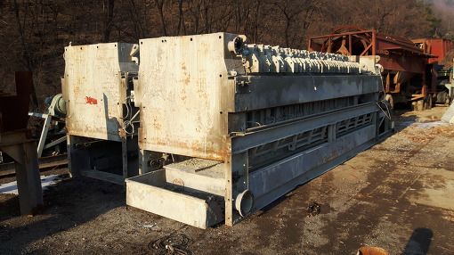 중고 필타프레스, 중고 휠타프레스, 규격 1200 x 1200 x 80ea, FRP 판넬, 총2대, 문의 02-2677-5544, used filter press, capacity 1200mm x 1200mm x 80ea, FRP panel, smgyo@naver.com,